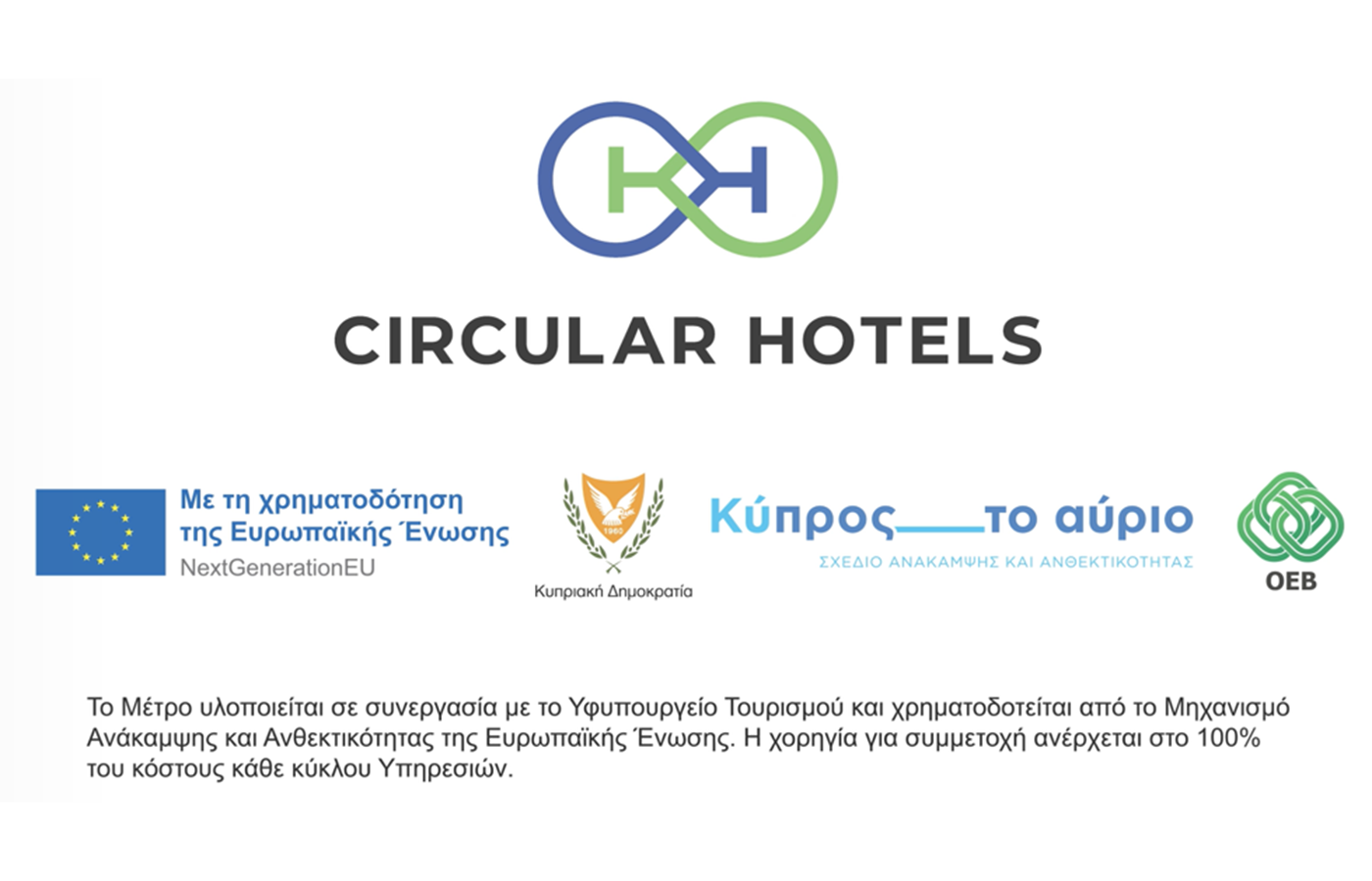 Η Ομοσπονδία Εργοδοτών & Βιομηχάνων (ΟΕΒ) ανακοινώνει την ολοκλήρωση της διαδικασίας ένταξης των ξενοδοχειακών εγκαταστάσεων στο Μέτρο «Προώθηση της Κυκλικής Οικονομίας στις Ξενοδοχειακές Εγκαταστάσεις», το οποίο χρηματοδοτείται από το Μηχανισμό Ανάκαμψης και Ανθεκτικότητας της Ευρωπαϊκής Ένωσης του Σχεδίου Ανάκαμψης και Ανθεκτικότητας (ΣΑΑ) Κύπρου για την περίοδο 2021 – 2026. Στον ακόλουθο ηλεκτρονικό σύνδεσμο μπορείτε να...